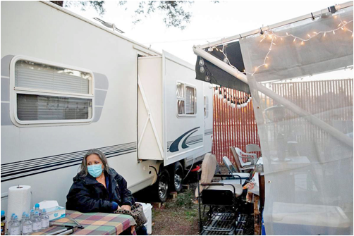 The unsigned notes instructed the fire victims to move out within three days and leave the area clean and free of debris. There wasn’t much to leave, just a few old travel trailers and vehicles parked on a dirt strip in the Napa Valley Expo fairgrounds. But the small group of refugees from the LNU Lightning Complex fires understood the message. Somebody wanted them gone. The September eviction deadline came and went. But there have been more. And members of the tight-knit group said they feel a constant pressure to move along. A sense of being unwanted and an eyesore.