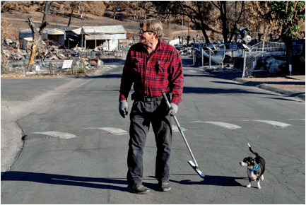 As Quecke straddled the warped steel frame of her destroyed trailer one last November day, she sifted through the gray ash. She’s filled eight garbage bags full of soot as she painstakingly searched for sentimental items in the remains of her home. On this day, she found her porch bell, a military trinket from her father, a 32-year Navy veteran who died in 2012. “He was on my shoulder saying, ‘Honey, it’s just stuff,’” Quecke said, choking up. “I grabbed his medals, flags, hat and ashes and got out of there.”