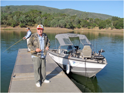 Sid took us over to the Spanish Flat area and we caught a couple of more fish. It was now around 3:30 PM and time to get back. The day had been warm and sunny and I was a bit worn out by my first Lake Berryessa fishing experience. We took the boat up to Sid’s for some photos. What a day! Sid and Albert both said that it was unusual to catch so many fish in one day. I guess I was the reason we did so well. I’m considering hiring myself out as a “good luck charm” for the next big tournament. The proof is that Sid and Albert went back out that very same evening without me – can you spell obsession? – but didn’t catch anything!