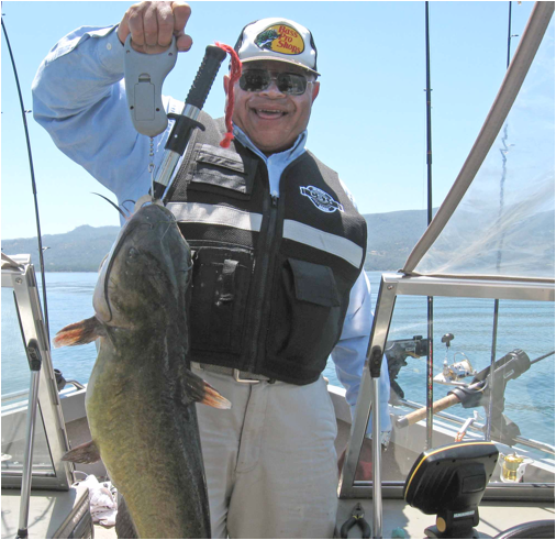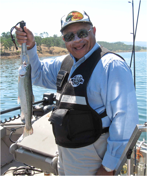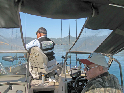 What follows is Sid’s version of that day’s events. It’s hard to compress eight hours on the lake in only a few hundred words. It’s hard to describe the beauty of the lake, the camaraderie, the “intellectual” level of the conversation, the relaxing wait while you troll, the feel of the strike, the bend of rod as you start to pull in your catch, the thrill of finally seeing the big bass or trout or catfish before you net it. And yes, Albert is obsessed with fishing. And yes, Albert really is as happy as he looks in the pictures when he lands one. It really was a special day for me on Lake Berryessa. My great thanks to Sid and Albert.
