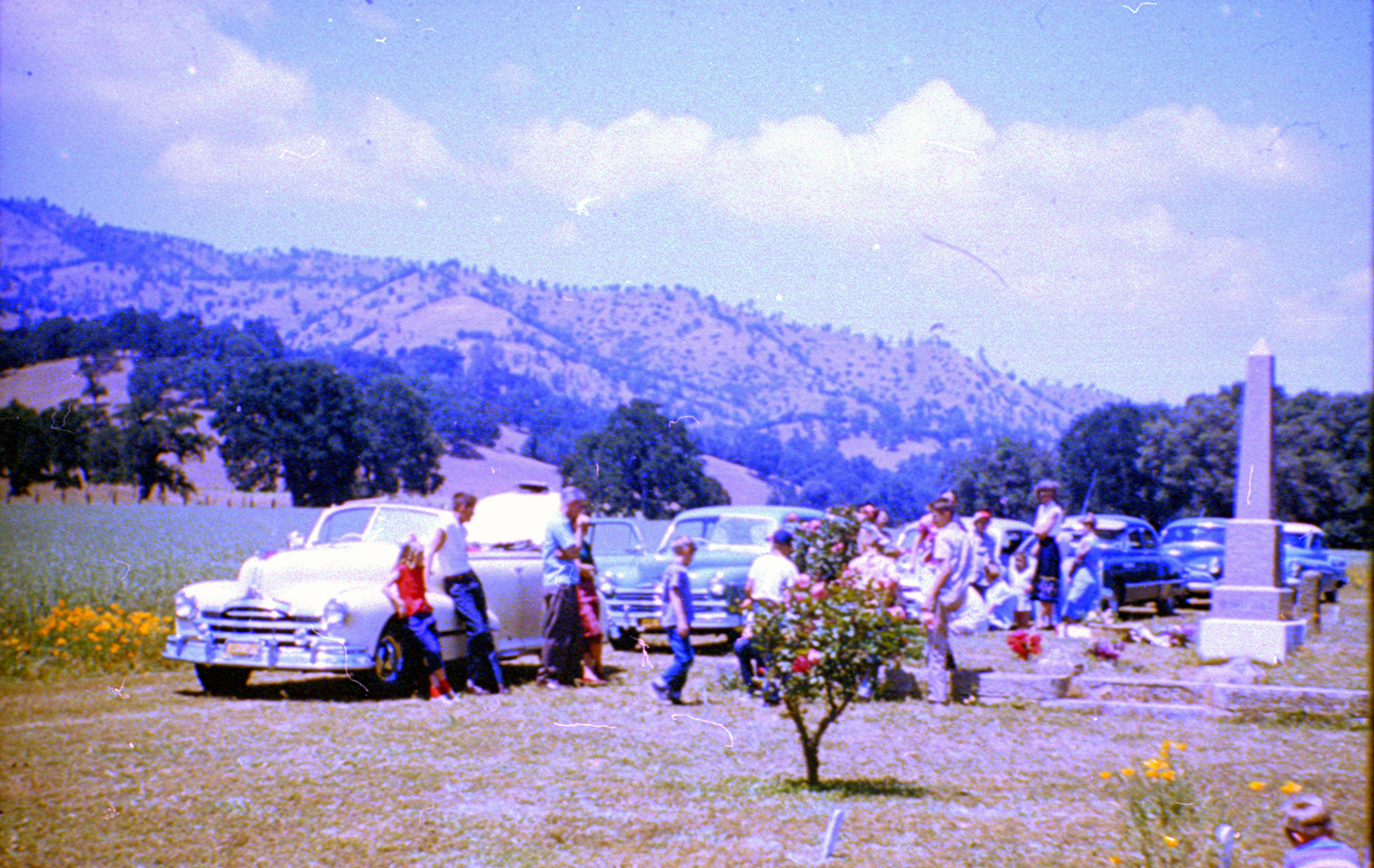 Scribner family at monument Monticello Cemetary